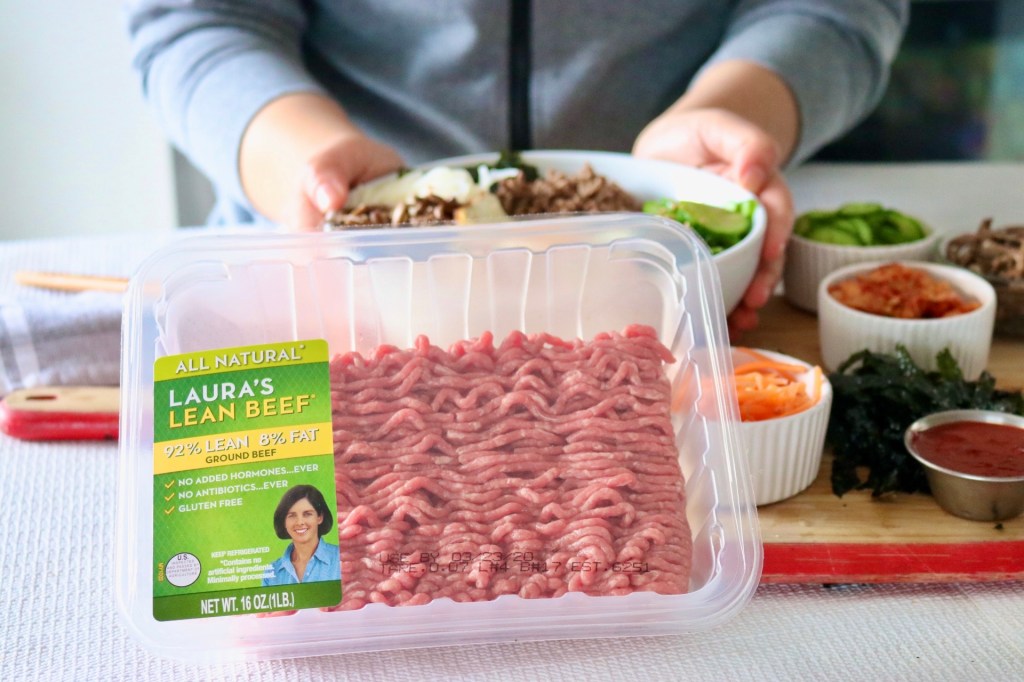 In a large bowl, add 1 cup of rice then top with Laura’s Lean beef, watercress/spinach, bean sprouts, julienned carrots, cucumber, seaweed and egg. Serve with a 1 TBSP of gochujang and sprinkle sesame seeds. Feel free to add more gochujang to make it spicier and have it with Kimchi on the side.