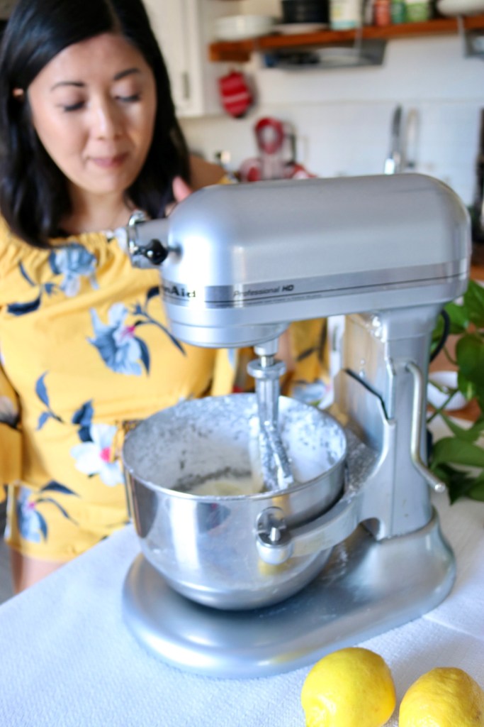 6. While the cupcakes are baking, lets start our buttercream . You’ll need to add butter, salt and zest to a bowl. Use a paddle attachment and rough it up a bit so the zest can release the oil inside.